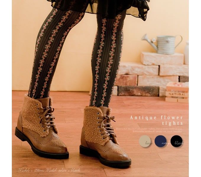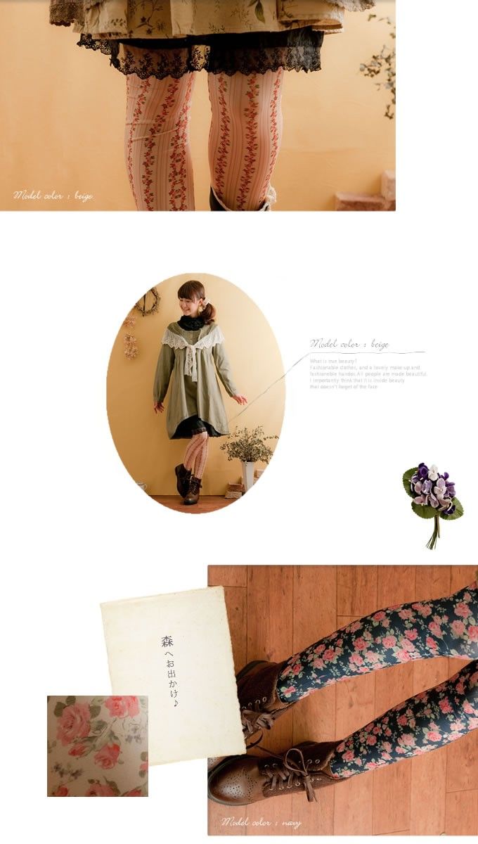 >>3カラー♪コーデにぱっとお花を咲かせて♪<< 淡いアンティークな花柄の森ガールタイツ |